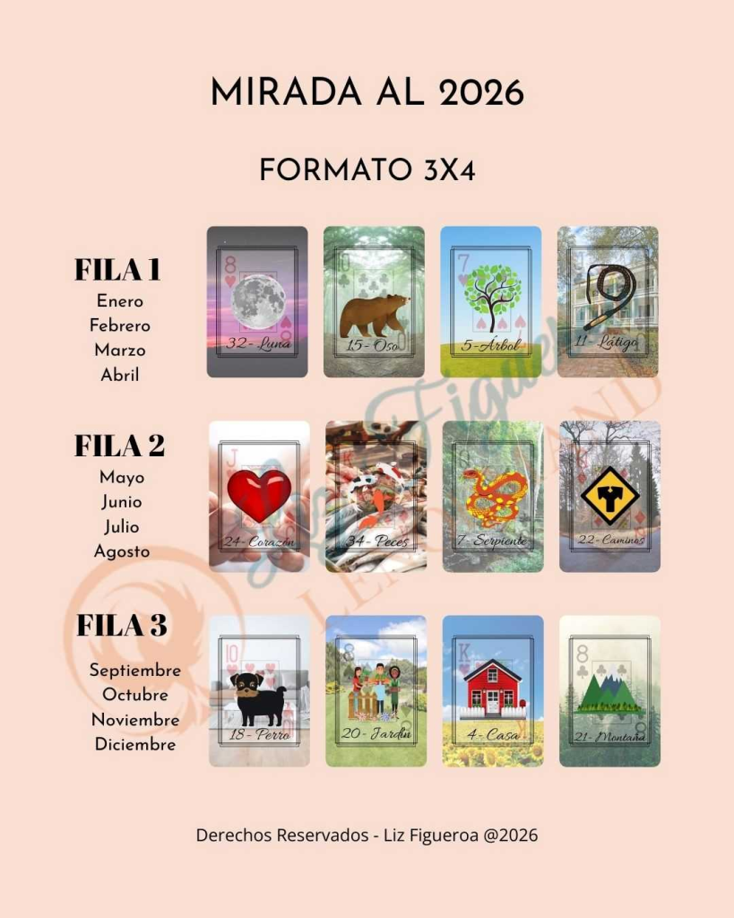 Ahora sí, vamos a la parte práctica. Esta tirada es de mis favoritas para comenzar el año porque es clara, visual, y te permite ver el 2026 mes a mes sin convertirlo en un drama.